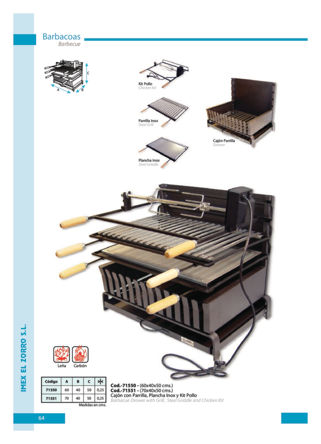 Cajón Parrilla con Parrilla, Plancha y Kit Pollo 60x40x50 |