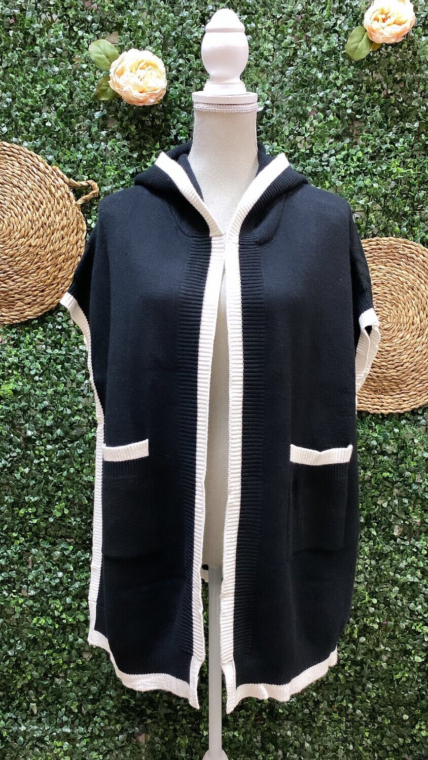 | Chaleco Bicolor. Chaleco-chaqueta en color negro con ribete blanco y detalle en los bolsillos. Talla única (36-48) |