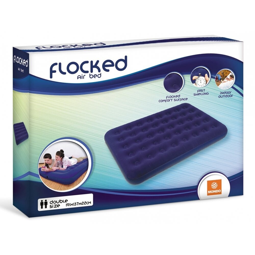 Colchón hinchable de 191x137x22Cm con capacidad para 2 personas, apto tanto para interior como exterior, de rápido inflado que se presenta en un suave acabado flocado en color azul marino.