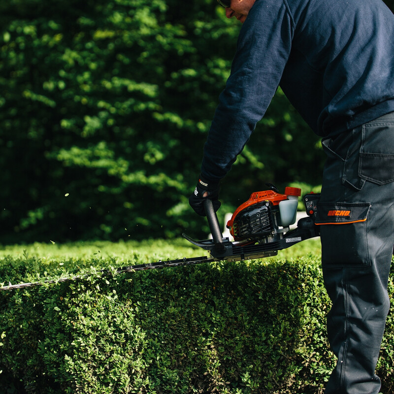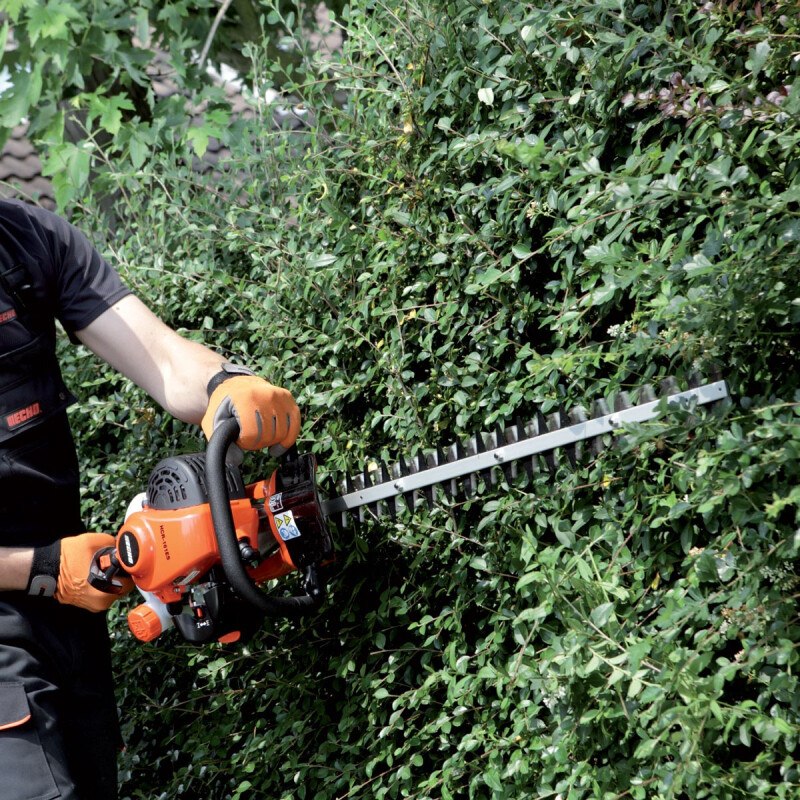 Calidad profesionalFabricado con la solidez y robustez que caracteriza a los productos ECHO, el cortasetos HCR 165 ES, por su potencia y comodidad, puede ser utilizado tanto por empresas de mantenimiento y jardineros, como usuarios particulares. Su motor diseñado y fabricado en Japón cumple con la segunda fase de la estricta directiva comunitaria de emisiones (EUST5), con menor consumo de carburante, bajo nivel de ruidos y menos emisiones de escape. Sistema de arranque asistido por muelle ES-Start que requiere el mínimo esfuerzo. El motor de arranque sólo requiere un corto tirón del cable. Mínimas vibracionesEl cortasetos ECHO HCR 165 ES ofrece un mínimo nivel de vibraciones, gracias a su tecnología integrada de bajas vibraciones que reduce enormemente la fatiga del usuario, permitiendo que la tarea de cortar los setos sea mucho menos cansada, sea cual sea la cantidad de setos a recortar. Uso confortable y sin fatiga, incluso para largas jornadas de trabajo. Fácil utilización y mantenimientoCon empuñadura giratoria con cinco posiciones diferentes que permite ajustarlo en un ángulo de 180 grados, para un uso mucho más confortable y una máxima maniobrabilidad, gracias a que gira el manillar, no toda la máquina. Como medida de seguridad, el acelerador se desconecta hasta que el manillar no se bloquea en una posición de trabajo determinada. El cortasetos ECHO HCR 165 ES es de fácil mantenimiento, ya que presenta un fácil acceso a las partes clave de la máquina. Permite un fácil acceso al filtro de aire sin necesidad de herramientas, incluso llevando guantes. Cuida al usuario y al setoEficaz sistema de refrigeración mediante el cual el aire es empujado hacia el seto, evitando la acumulación de suciedad en el motor. Este sistema de escape superior, con carcasa envolvente, protege al usuario y a cualquier persona que se acerque a la máquina de cualquier quemadura que pueda producirse al tocar el escape caliente. Las emisiones de gases son direccionadas lejos del usuario, con lo que también se previene el calentamiento y la decoloración de la planta. Incorpora funda protectora de la cuchilla, que previene al usuario de posibles accidentes por contacto con la cuchilla. La mejor calidad de corteEl cortasetos ECHO HCR 165 ES incorpora doble cuchilla cortada con láser y con afilado de precisión, mucho más duradero, que ejecuta un corte mucho más limpio. Con cuchillas autoafilables gracias a la acción de los dientes. El paso de cuchilla de 35mm permite trabajar en las mejores condiciones con distintos tipos de setos. Ofrece corte japonés ajustable, para un corte mucho más eficiente y duradero. Nuevo ángulo del bastidor que permite un corte perfectamente alineado con el seto y mejor acabado, disminuyendo también la fatiga del usuario. |