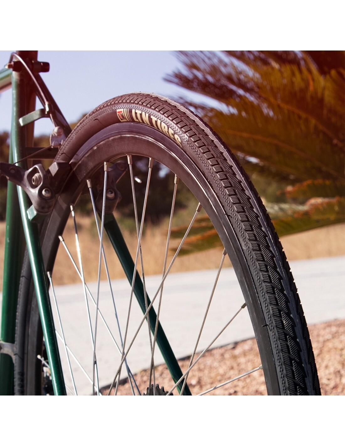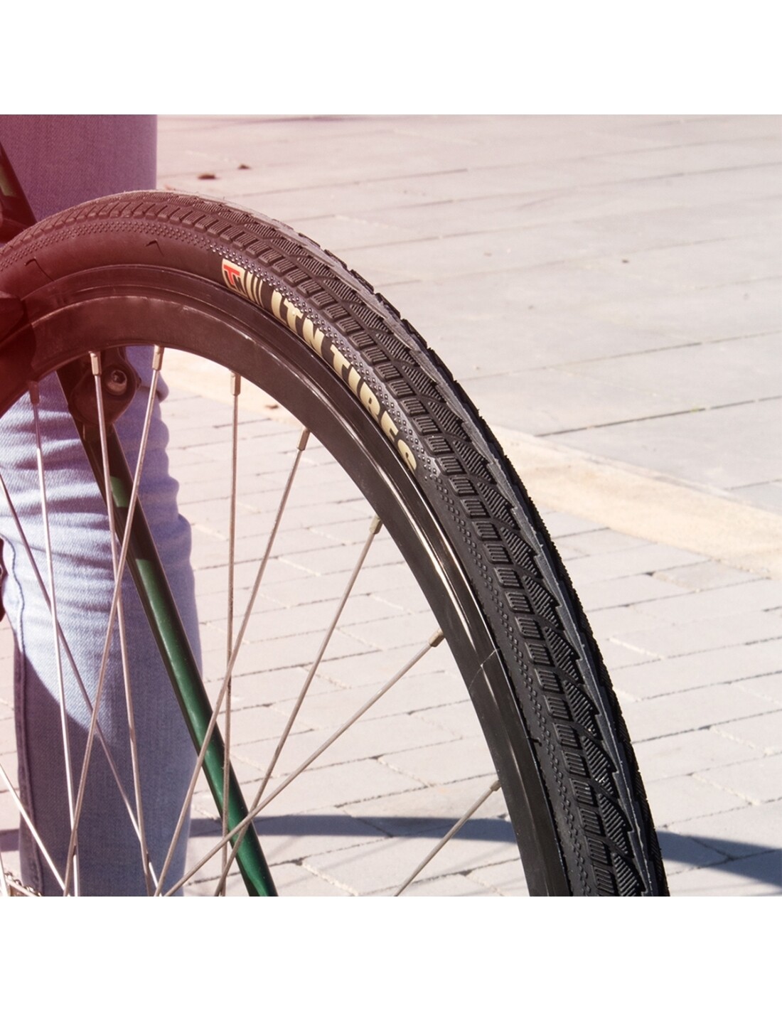 | Las cubiertas de bicicleta Counter para ruedas de 700 son las indicadas para una bicicleta de carretera a la que se le va a dar un uso urbano y no siempre va a rodar por asfalto. Su taqueado asegura un buen agarre en terrenos con grava y pequeñas piedras permitiendo una rodada cómoda y segura. |