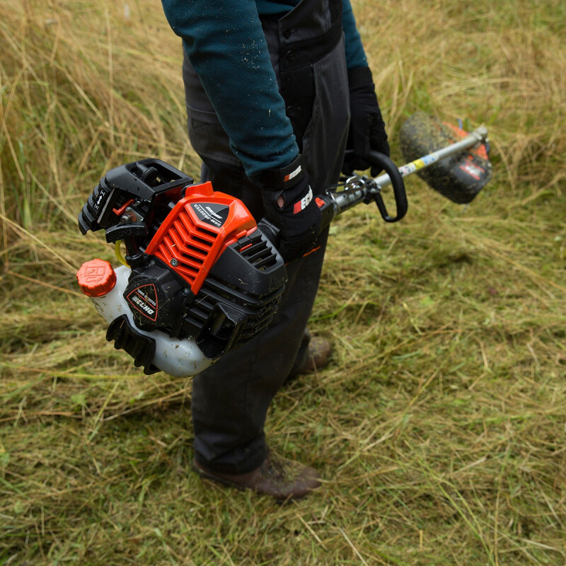 La profesional más ligeraLa desbrozadora ECHO SRM 2621 T ESL con reductora es el modelo más potente de su categoría. Su nuevo motor de alto rendimiento la convierte en la desbrozadora profesional ligera más potente del mercado. Gracias a su reductora “High-Torque” de alto par ofrece un 50% más de fuerza y permite trabajar con una superficie de corte hasta 4 veces mayor, con una desbrozadora de poco peso y bajo consumo. Permite realizar cualquier tipo de trabajo profesional de limpieza y mantenimiento en jardines. Es la máquina ideal para los jardineros profesionales y las brigadas de mantenimiento. Reductora exclusiva High TorqueCon un motor relativamente pequeño, esta desbrozadora es una máquina muy ligera y con bajos niveles de vibración, a la vez que muy potente. Esto es posible gracias a su reductora exclusiva “High Torque”. Con una relación de transmisión 1:2.07, el nuevo cabezal exclusivo de ECHO dobla el par disponible a la salida del reductor y ofrece excelentes niveles de par motor, hasta un 50% más que los modelos equivalentes. Máximo rendimiento con hilo de nailonLa desbrozadora ECHO SRM 2621 T ESL con reductora está especialmente desarrollada para trabajar con hilo de nailon, donde su rendimiento es netamente superior al de cualquier otra máquina, incluso trabajando con diámetros de hilo de nailon más gruesos. La estructura del cabezal con reductora incorpora cinco rodamientos de bolas para mayor resistencia y durabilidad. Permite hacer frente a una gama más amplia de tareas con sólo una desbrozadora porque más par significa más potencia de corte sin penalizar al usuario con el peso de modelos de mayor cilindrada. Potencia y tecnologíaSu motor de alta resistencia presenta un menor desgaste, lo que significa una mayor vida útil del mismo y durabilidad extendida. Su motor diseñado y fabricado en Japón cumple con la segunda fase de la estricta directiva comunitaria de emisiones (EUST5), con menor consumo de carburante, bajo nivel de ruidos y menos emisiones de escape. Su sistema de encendido electrónico CDI mejora el comportamiento de la máquina a cualquier régimen del motor y se ajusta perfectamente a cada condición de trabajo. El exclusivo sistema de arranque fácil ES-Start permite un rápido encendido con el mínimo esfuerzo. Comodidad de usoDisfruta de bajo nivel sonoro y tecnología integrada de bajas vibraciones, gracias al motor montado sobre silent-blocks, lo que la convierte en un modelo muy cómodo para trabajar durante largas jornadas. Se mantiene dentro de los niveles de vibraciones establecidos por la Directiva 2002/44/CE, siendo así un modelo muy atractivo para las autoridades locales y los grandes contratistas. Destaca su peso reducido, para menor fatiga del usuario. La importancia de los detallesFiltro de aire de papel de alto rendimiento de fácil limpieza y con prefiltro de esponja, de fácil acceso sin necesidad de usar herramientas, que permite intervalos de mantenimiento más largos y sencillos. Los cables de encendido están protegidos gracias al nuevo diseño de la cubierta del motor, evitando así averías. La maneta está montada sobre silent-blocks, reduciendo drásticamente las vibraciones y la fatiga del usuario. Con el mejor equipamientoLa desbrozadora ECHO SRM 2621 T ESL con reductora de manillar simple es adecuada para trabajar con hilo de nailon. Se entrega con un cabezal semiautomático Z5, protector multifunción, arnés estándar y kit básico de herramientas, para que puedas disfrutar del trabajo cómodamente y bien protegido. Todo está pensado para la máxima seguridad del usuario. |