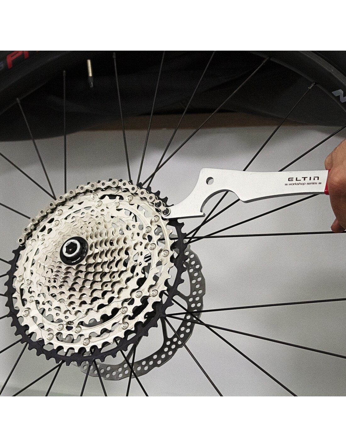 | La herramienta extractora de piñones de Eltin te aporta la máxima comodidad y facilidad a la hora de realizar el reemplazo de los piñones de tu bicicleta. Látigo de cadena y extractor de piñones muy fácil de usar gracias a su larga palanca que permite gran manejabilidad. Cuenta con mango ergonómico para un agarre perfecto y está fabricado en acero de alta calidad. |