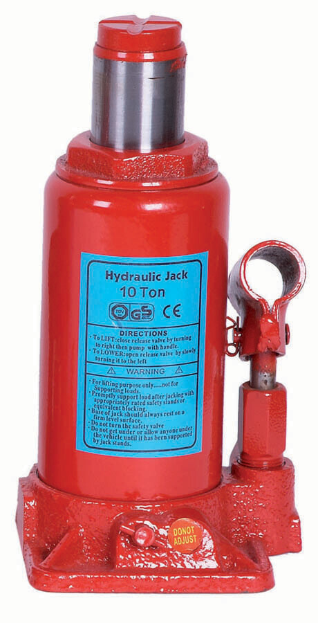 | Los gatos hidráulicos de botella con capacidad de carga de 10 toneladas. Dispositivo de subida y válvula de seguridad en bajada y tornillo de regulación. |