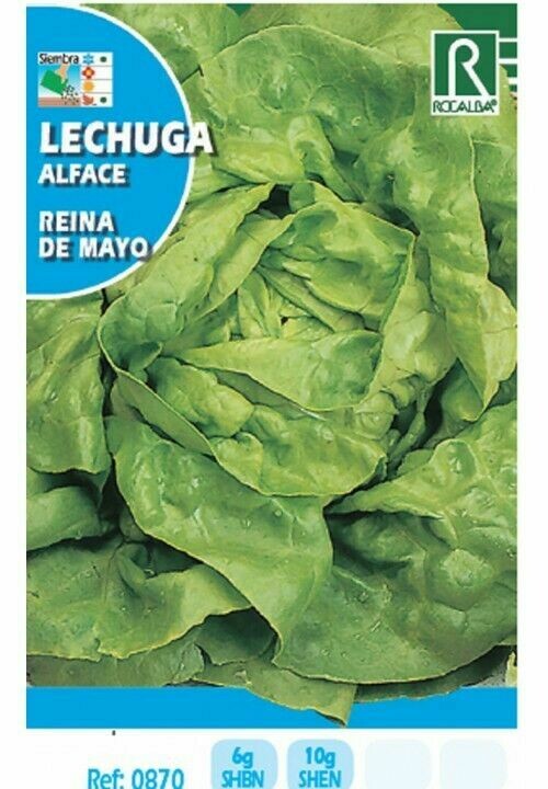 | Semillas Lechuga reina de mayo - Lactuca sativa - Rocalba - Variedad de ciclo precoz, adaptada al cultivo de primavera - Hojas de tamaño medio, redondeadas, de color verde claro, ligeramente coloreadas con antocianinas, mates, de textura blanda y nervio central poco marcado - Forma rápidamente cogollo, de tamaño medio, redondeado - CULTIVO: sembrar superficialmente en tierra fina. Fertilizar suficientemente para obtener un rápido desarrollo - Mantener el cultivo siempre con humedad |