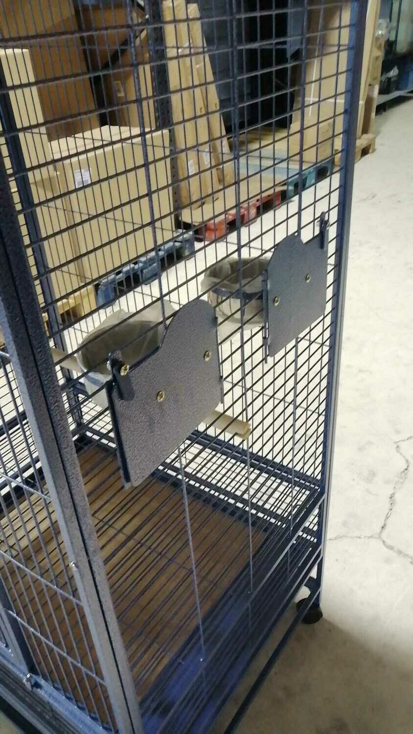 | Características Jaula para Loros Doble Barcelona - Color Exclusivo De gran capacidad, esta jaula de loros dispone de una puerta en el centro con cierre y con una pestaña de seguridad. Dispone de 2 perchas de madera, 2 comederos giratorios de 12,5 cm de acero inoxidable, Parque de juegos superior con 2 comederos de acero inoxidable de 10cm Accesorio para colocar gancho porta juguetes en el parque superior. Bandejas laterales recoge-desperdicios (colocación opcional), bandejas y rejilla extraíble que facilitan la limpieza Medidas totales exteriores 100cm (ancho) x 80cm (fondo) x 175 (alto) Medidas habitáculo 77cm (ancho) x 61cm (fondo) x 95cm (alto) Grosor de los barrotes: 3.5 mm Distancia entre barrotes: 21.1mm |
