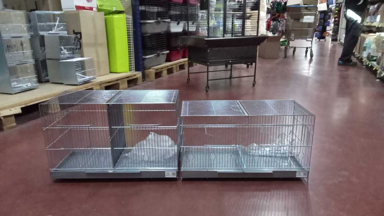 | Jaula para la cría de canarios con separador. Barrotes zincados con 2 puertas frontales y 2 puertas laterales para nidos exteriores. Incluye parrilla de fondo extraíble, bandeja extraíble, 1 separador opaco y 1 separador de rejilla, 6 comederos/bebederos y 2 palos saltadores. Dimensiones (alto x ancho x fondo): 38,5 x 60 x 26 cm. |