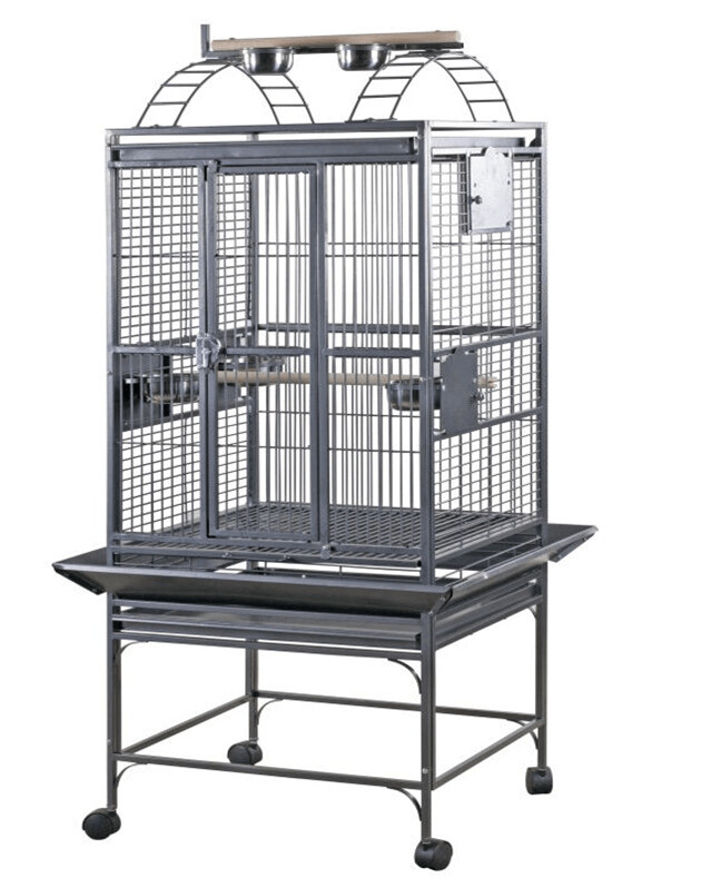 Jaula un habitáculo resistente y cómodo, ideal para su mascota. Especialmente diseñada para loros de tipo mediano como Amazonas o yacos, así como jaula de cría para loros pequeños tipo you-you, jaula Dakota es garantía de resistencia y de calidad, como todas las demás jaulas La jaula tiene el plus de contar con un parque de juegos en la parte superior, dotada de palo reposaaves, dos comederos de acero inoxidable así como bandeja; también cuenta con un accesorio específico para el cuelgue de juguetes, fomentando la actividad y ejercicio de nuestra mascota. Dispone además de tres cuencos de acero inoxidable, giratorios y con sistema antivuelco, que facilitan el acceso al recargo de los alimentos y el agua sin necesidad de introducir la mano en el interior de la jaula, lo que hace de Jaula una elección cómoda y accesible.