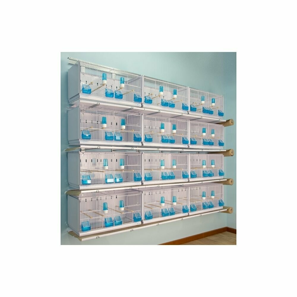 | En precio de las jaulas se completa con: – Estructura de pared Medidas cada jaula: 64x30x34h cm Modulo: 12 jaulas, 4 altura, 3 columna Medidas modulo: largo.210 x ancho 37 x 168 Altura cm Fijación: Estructura para pared Sistema: Rollos Papel Color: Blanco |