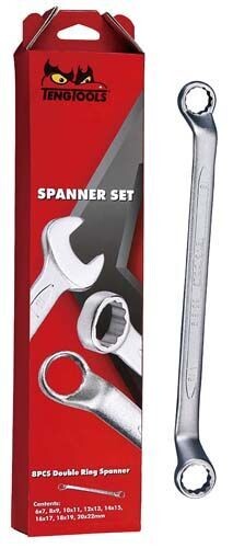 | Juego de Llaves Estrella Acodadas de Tengtools está compuesto por 8 piezas. Llaves de doble boca, hechas de cromo vanadio y entregadas en caja de cartón. Herramientas adecuadas especialmente para alcanzar tornillos o tuercas ligeramente hundidas. Medidas: 6x7-8x9-10x11-12x13-14x15- 16x17-18x19-20x22 mm |