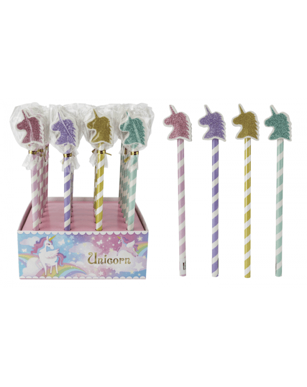 LOTE 24 LÁPICES + BORRADOR PURPURINA "UNICORNIO"