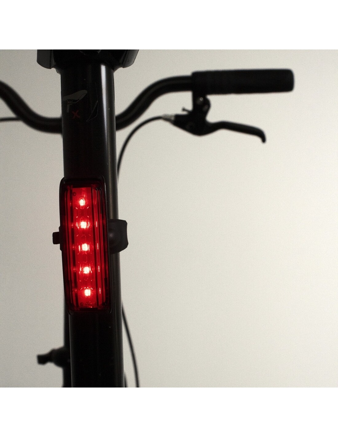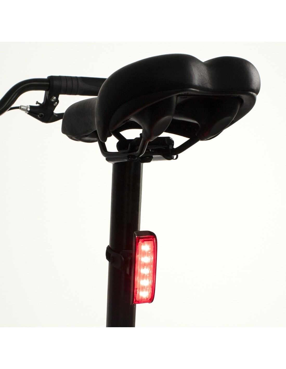 | El faro trasero E12069 está formado por 6 ledes que pueden alternar su funcionamiento entre 4 modos de flash y uno estático. Equipa una batería de 550mAh recargable en 2 horas y certificación IP65 que garantiza una buena resistencia al agua y a entornos polvorientos. |