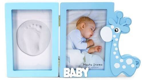 MARCO DE MADERA + HUELLAS JIRAFA AZUL