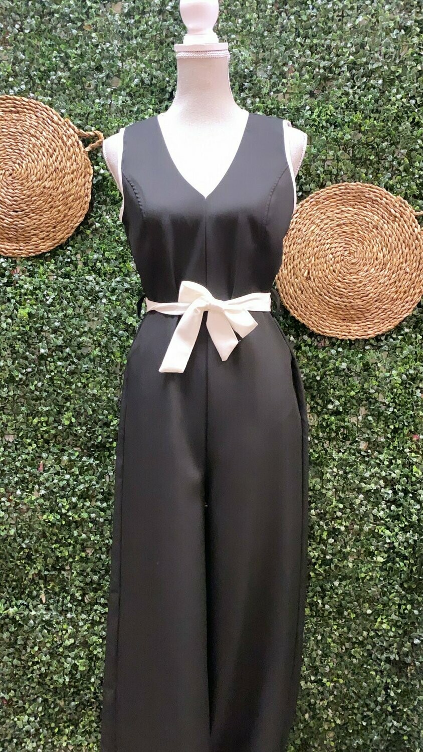 | Mono B&W. Mono en blanco y negro, con detalles en escote y cinturón en blancos. Pernera palazzo. Talla única (S-M-L) |