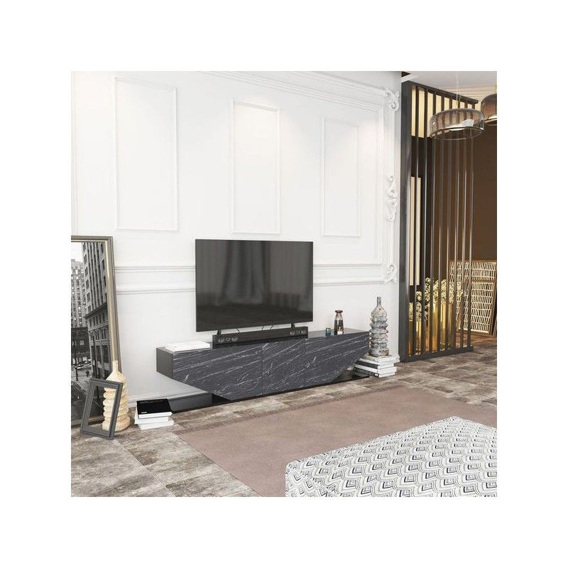 Mueble de TV VIOLET, biIaminado mármol negro, 180 cms.