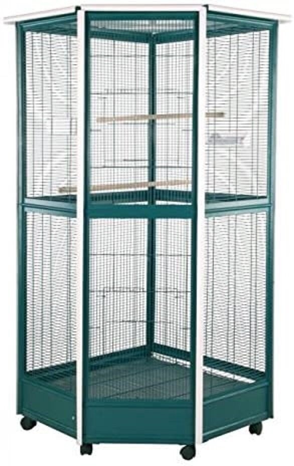 | Este voladero o Pajarera de Jardín Exterior nos permite reunir en un único espacio diferentes especies para que convivan y poder disfrutar en un rincón de su Jardín de estas aves. Ideal para aves de tipo pequeño a mediano tales como canarios, jilgueros, Ninfas, periquitos, agapornis.. . Su forma acabada en esquina le permitirá ponerla en cualquier rincón de su jardín. Acabados de Calidad. Incluye Accesorios Características Técnicas - Medidas totales exteriores: 83,4cm (fondo) x 83,4cm (fondo) x 169,3cm (alto) - Grosor de los barrotes: 2 mm - Distancia entre barrotes: 10.5mm Características habitáculo - Dos puertas grandes para fácil acceso. - Perchas de madera - Bandeja y rejilla extraíble que facilitan la limpieza. - 5 ruedas para facilitar movilidad. |