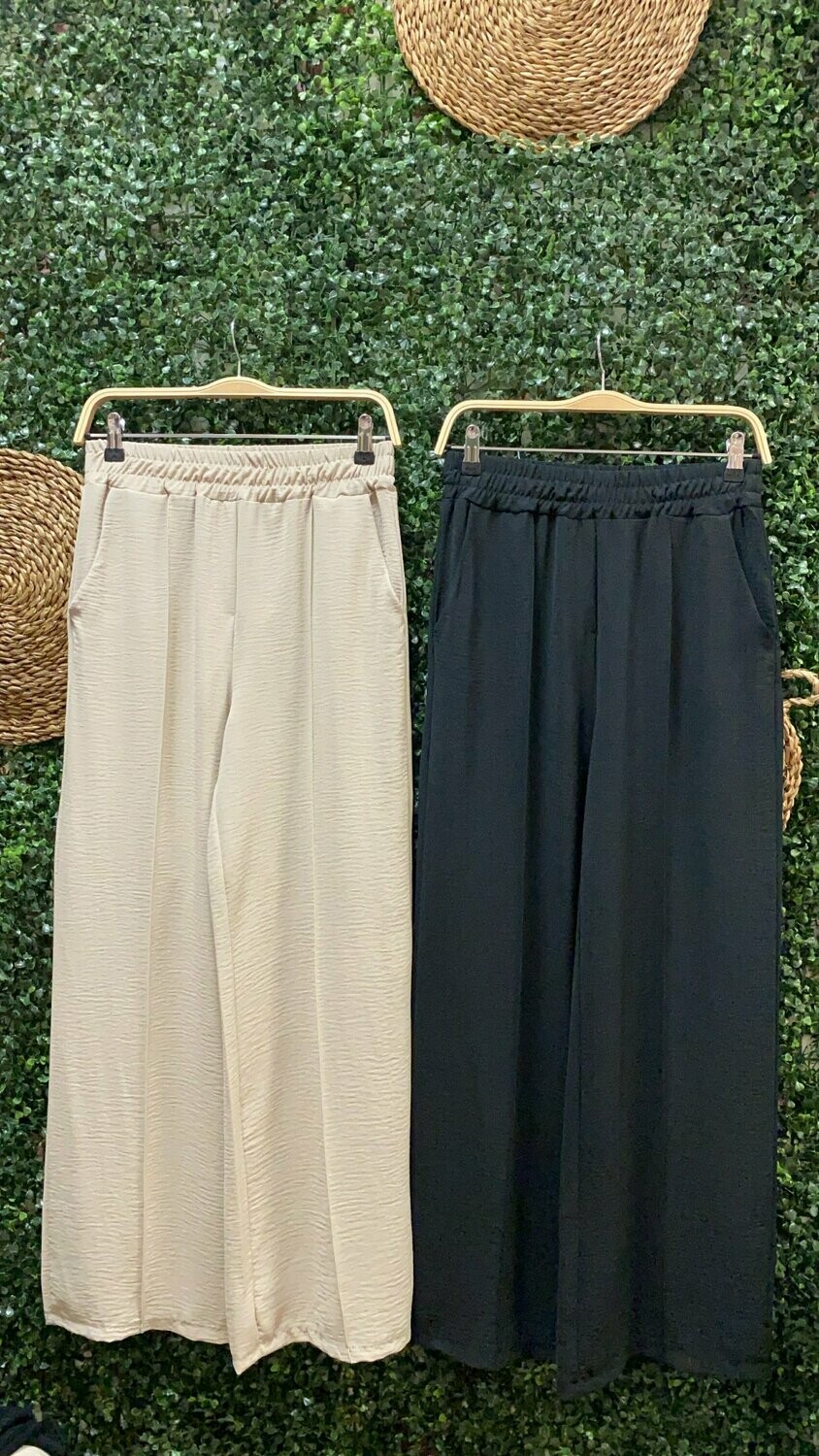 | Pantalón Palazzo. Pantalón en color beige o negro con bolsillos en los laterales. Talla única (s-m) |