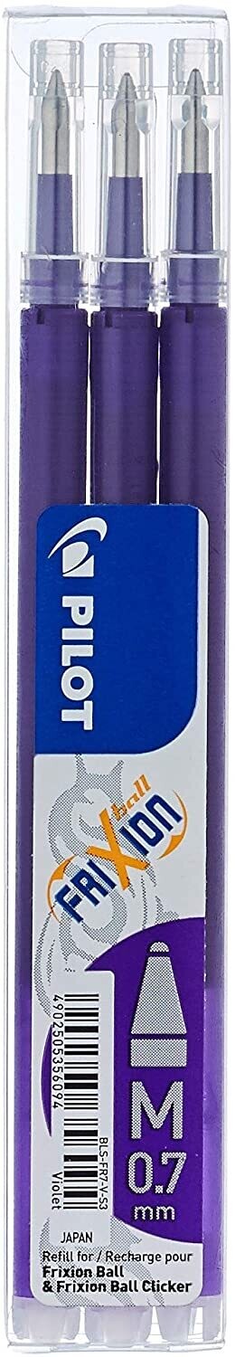 Pilot FriXion Recambio para bolígrafo de gel, punta mediana de 0,7 mm COLOR MORADO CAJA DE 3 UNIDADES