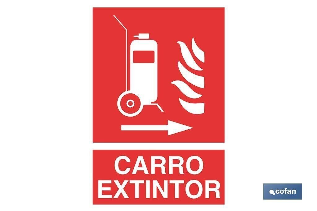 | Señal de socorro Carro extintor. Pictograma + Texto. Tamaño y material a elegir (luminiscente y adhesivo) 1ud |