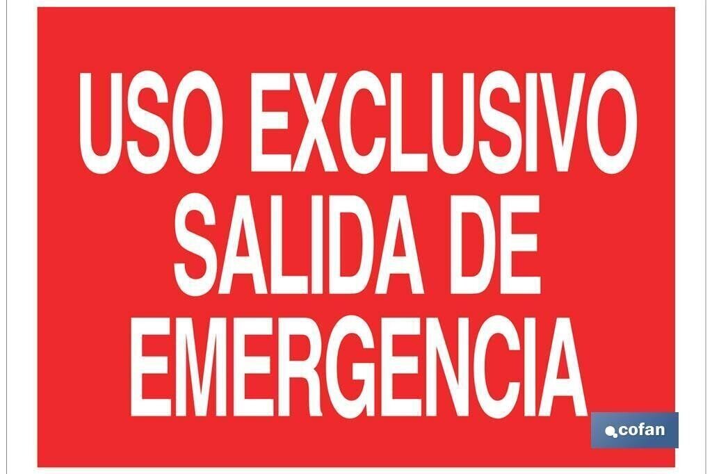 | Señal de prohibición con texto Uso exclusivo Salida de Emergencia. 1ud |