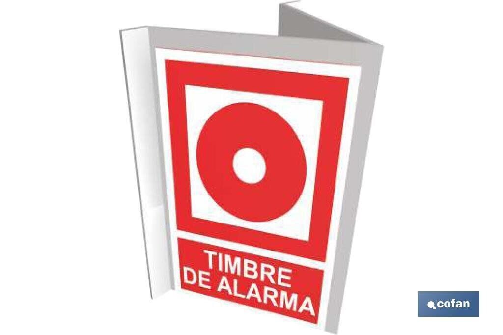 | Señal Panorómica "TIMBRE DE ALARMA" con texto, luminescente 297 x 210mm. 1ud |