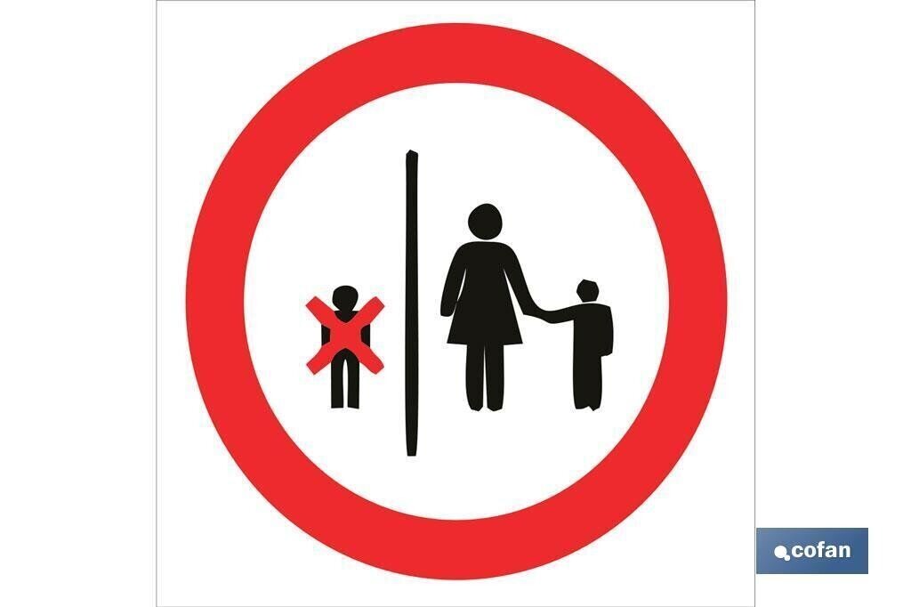 | Señal de prohibición, prohibido ascensor a menores de 14 años. 1ud |