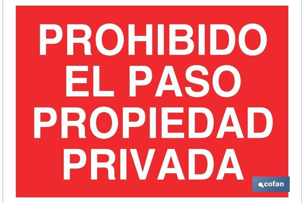 | Señal Texto "prohibido el paso propiedad privada" en varias medidas y materiales. 1ud |