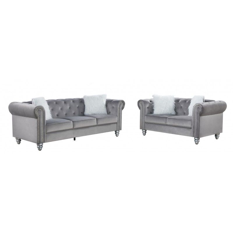 Set Sofás CHESTER STYLE, 3 + 2 plazas, tapizado velvet gris 27