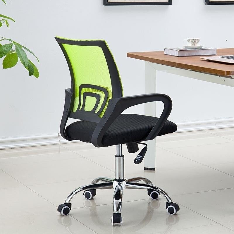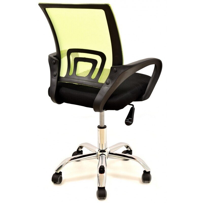 | -Sillón de oficina, moderno -Armazón de polipropileno con acabado negro -Basculante con regulación de intensidad. -Regulación de altura mediante pistón de gas cromado. -Base metálica con acabado cromado. -Tapizado del respaldo en malla verde pistacho, asiento en tejido negro -Otros colores disponibles DIMENSIONES: Ancho: 56 cms Fondo: 59 cms Alto: 89~97 cms. EMBALAJE: Plástico y cartón. UNIDADES: 1 VOLUMEN: 0,074 m3 |