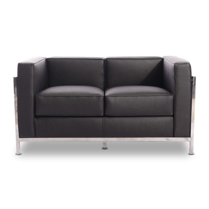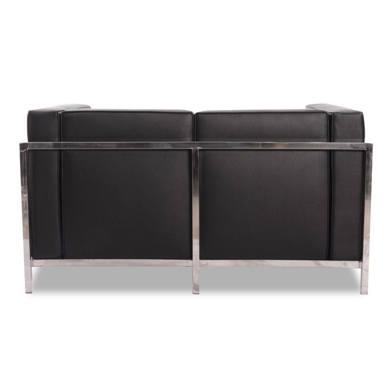 Sofá LOBBY, 2 plazas, acero inoxidable, similpiel negra