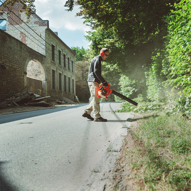 Potencia aseguradaSu potente motor asegura al soplador de mano ECHO PB 2520 la energía suficiente para trabajar sin contratiempos, con un excelente ratio peso-potencia, funcionamiento a altas revoluciones y capacidad de funcionamiento en cualquier posición. Se trata de un motor de alto rendimiento Euro Stage II, con menor consumo de carburante, bajo nivel de ruidos y menos emisiones de escape. Sistema de encendido electrónico CDI. Su menor desgaste significa mayor vida útil del motor, mayor durabilidad y fácil mantenimiento. Más potente que un motor eléctrico. Facilidad de usoLos controles del soplador de mano ECHO PB 2520 están estratégicamente agrupados, siendo de fácil acceso y cómodo manejo. La puesta en marcha tanto en frío como en caliente es muy efectiva. El sistema Cruise Control incorpora un acelerador que permite fijar la potencia para un uso fácil y confortable. Cuando el acelerador de sitúa en posición de bloqueo, la potencia del motor se mantiene constante y el usuario puede quitar la mano del acelerador. Al mismo tiempo, la ubicación del arrancador a la derecha, con la máquina en orden de funcionamiento, la hace más ergonómica. Máximo confort para el usuarioSistema único de control rotacional, mediante un nuevo tubo anti giro excéntrico, exclusivo de ECHO, que evita que la máquina se mueva lateralmente al soplar, disminuyendo la carga sobre la muñeca y el brazo del usuario. Reduce el efecto "giro", haciendo menor el esfuerzo necesario para detener la rotación del soplador hacia las piernas del usuario. Cuando aceleramos otros equipos similares, normalmente se desequilibran hacia la derecha de manera acentuada. En cambio el soplador de mano ECHO PB 2520 se comporta de manera muy estable, hasta el punto de permitirnos controlar la máquina con un solo dedo. El depósito de combustible transparente facilita el control del consumo al usuario. Fiabilidad y seguridad profesionalEl filtro de aire del soplador de mano ECHO PB 2520 es de felpa con goma alrededor, de fácil mantenimiento y mayor rendimiento que el tradicional de esponja. El sistema patentado de anclaje EZ™ mantiene el tubo conectado al soplador de la manera más segura que existe, con el pestillo de bloqueo, permitiendo la conexión/desconexión del tubo a la máquina de manera fácil y segura. El sistema patentado de conexión POSI-LOC™ mantiene las distintas secciones del tubo soplador perfectamente conectadas entre ellas con total seguridad. Máxima polivalenciaEl soplador de mano ECHO PB 2520 tiene muchos detalles que le brindan gran polivalencia y profesionalidad. Dispone de un kit limpia canalones opcional, para mantener los canalones de los tejados libres de embozos. Su sistema de emisiones delantero permite que las emisiones producidas vayan lejos del usuario, manteniendo su entorno de trabajo más limpio y confortable. Todas sus ventajas la convierten en la máquina ideal para cualquier tipo de limpieza en el exterior: jardines, parques, terrazas, pistas deportivas, parkings, calles o plazas públicas. |