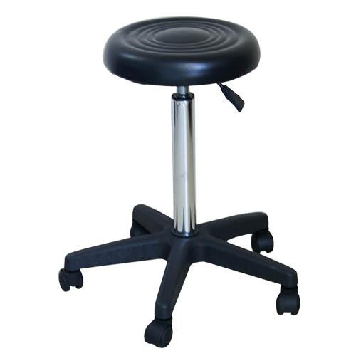 | Taburete ergonómico sin respaldo para evitar las "piernas cargadas" y en consecuencia, la fatiga del profesional. Diámetro del cojín: 32 cm. Altura variable de 52 a 72 cm. |