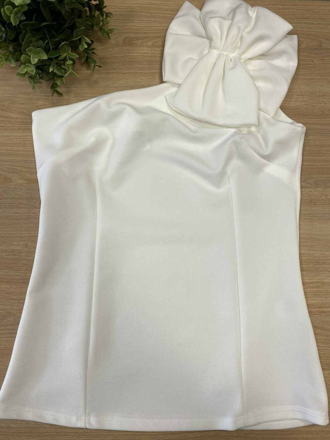 | Top Flora. Top en color blanco con escote asimétrico con detalle de lazo en un lado. Talla única (s-m) |
