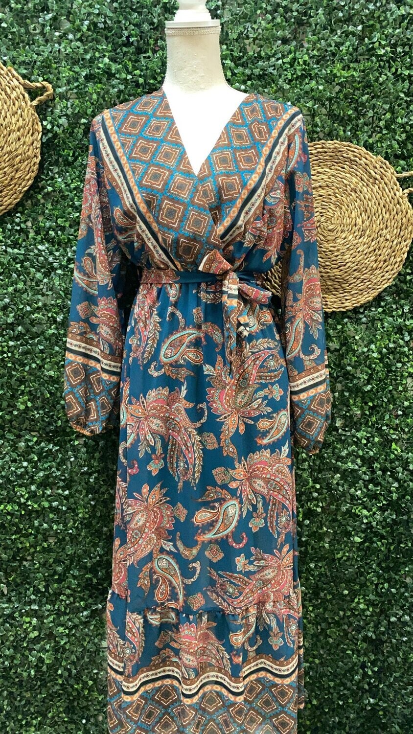 | Vestido Venecia. Vestido largo estampado en color azul o verde. Talla única (36-42) |