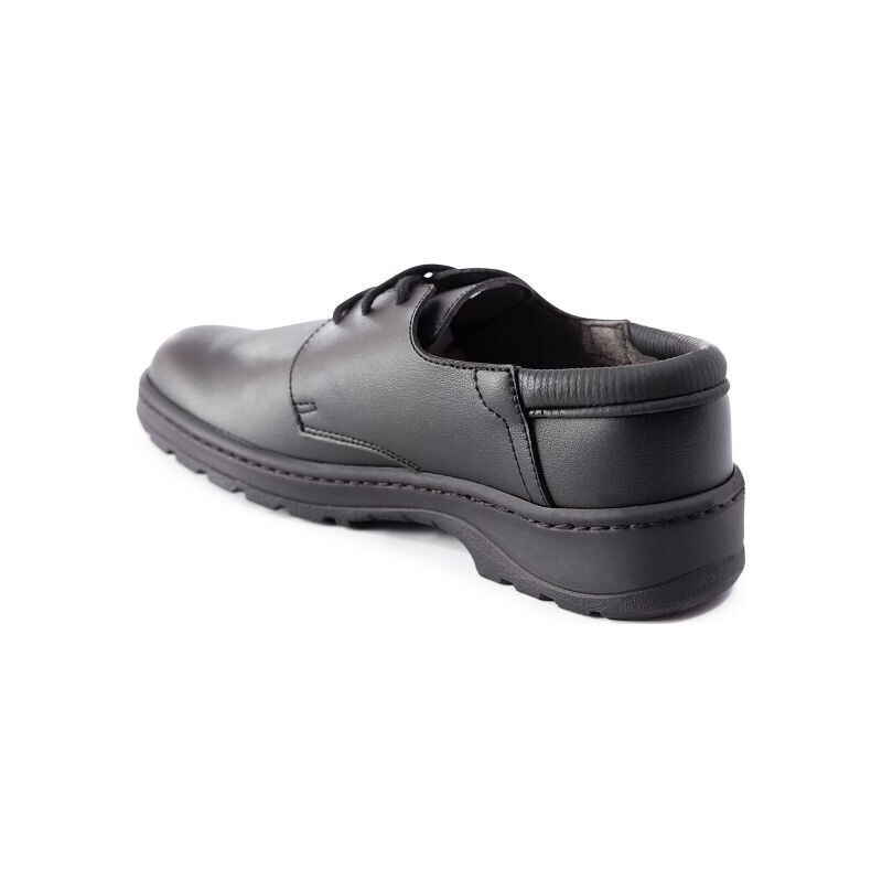 | Calzado laboral con cierre de cordones, antideslizante de gran coeficiente en seco y húmedo con resaltes acanalados en la suela para facilitar la evacuación de líquidos evitando el deslizamiento en suelos mojados. Corte de microfibra transpirable y lavable a 40º. Acolchado en el talón para evitar que el zapato se descalce al caminar o en posturas de flexión extrema, protegiendo al pie de rozaduras. Plantilla interior acolchada de espuma de poliuretano con tratamiento antibacterias. Fabricado mediante cosido de seguridad suela-corte para asegurar la union de las piezas al someterlos al lavado caliente. Normativa: en-iso-20347 Nivel de protección SRC + O1 + FO SRC = SRA + SRB (antideslizante en baldosa y detergente como lubricante + antideslizante en acero y glicerina como lubricante). O1 = parte trasera cerrada, antiestático, absorción de energía en el tacón, suela con resaltes. FO = resistencia a los hidrocarburos de la suela. COLOR: NEGRO TALLA:34-48 |
